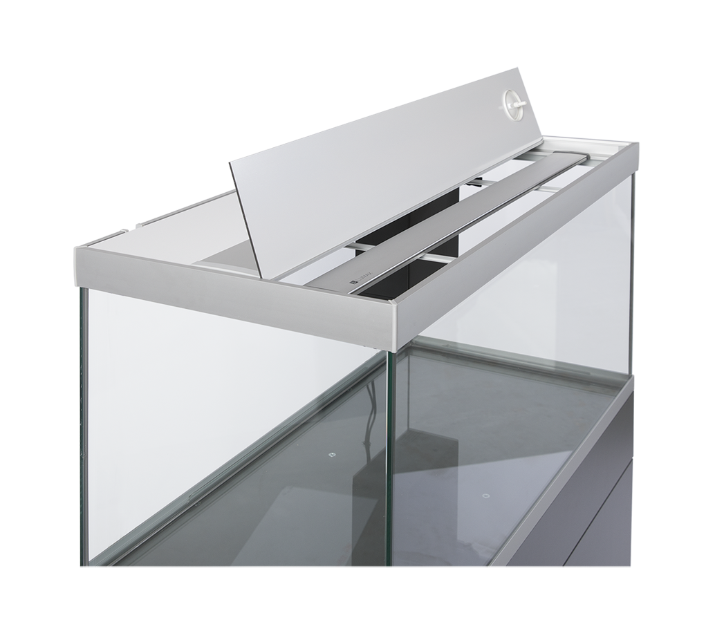 ELEMENT-filteret fastgøres let og effektivt i akvariets topramme. Du kan således helt selv bestemme, hvor du ønsker, det skal placeres. Da filteret netop er en alt-i-én løsning, indeholder det både filterkurve med filtermaterialer, et indbygget varmelegeme samt en cirkulationspumpe, som du let kan komme til øverst i filteret – du behøver ikke engang at tage filteret ud af akvariet. Du åbner blot filterets låg, hvorefter du nemt kan trække delene ud og rengøre dem.