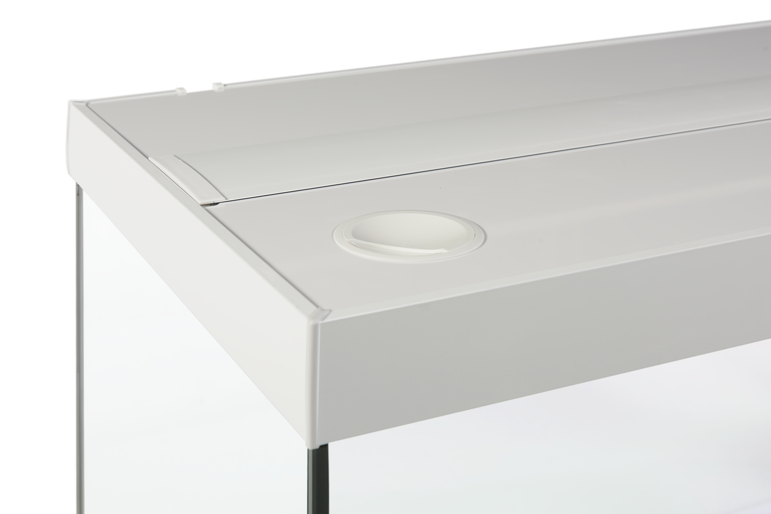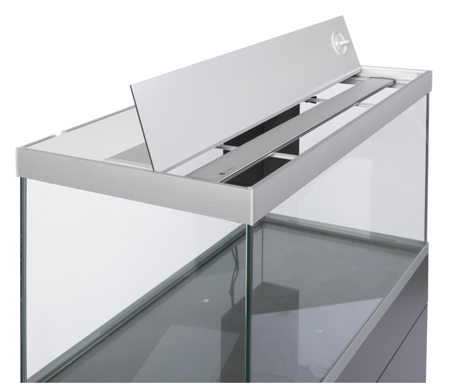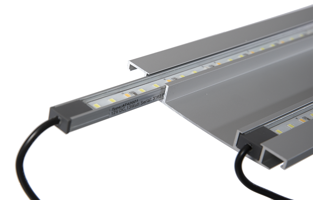 ELEMENT låget er et klassisk 3-delt låg, hvor du blot vipper den forreste del op, når du skal arbejde i akvariet. Har du brug for mere plads, kan du også ”folde” den midterste del med op - eller helt fjerne dem alle. De to yderste lågplader er fremstillet i en alu-plast kompositplade der er både stærk, formstabil og særdeles let at holde ren. Det midterste låg er en kraftig aluminiumsprofil der er lakeret i akvariets farve. Her monterer du også de to medfølgende LED-lysskinner. Lysskinnerne skubbes blot ind fra enden af profilen og er derfor lette at få ud igen ved f.eks. rengøring af låget.