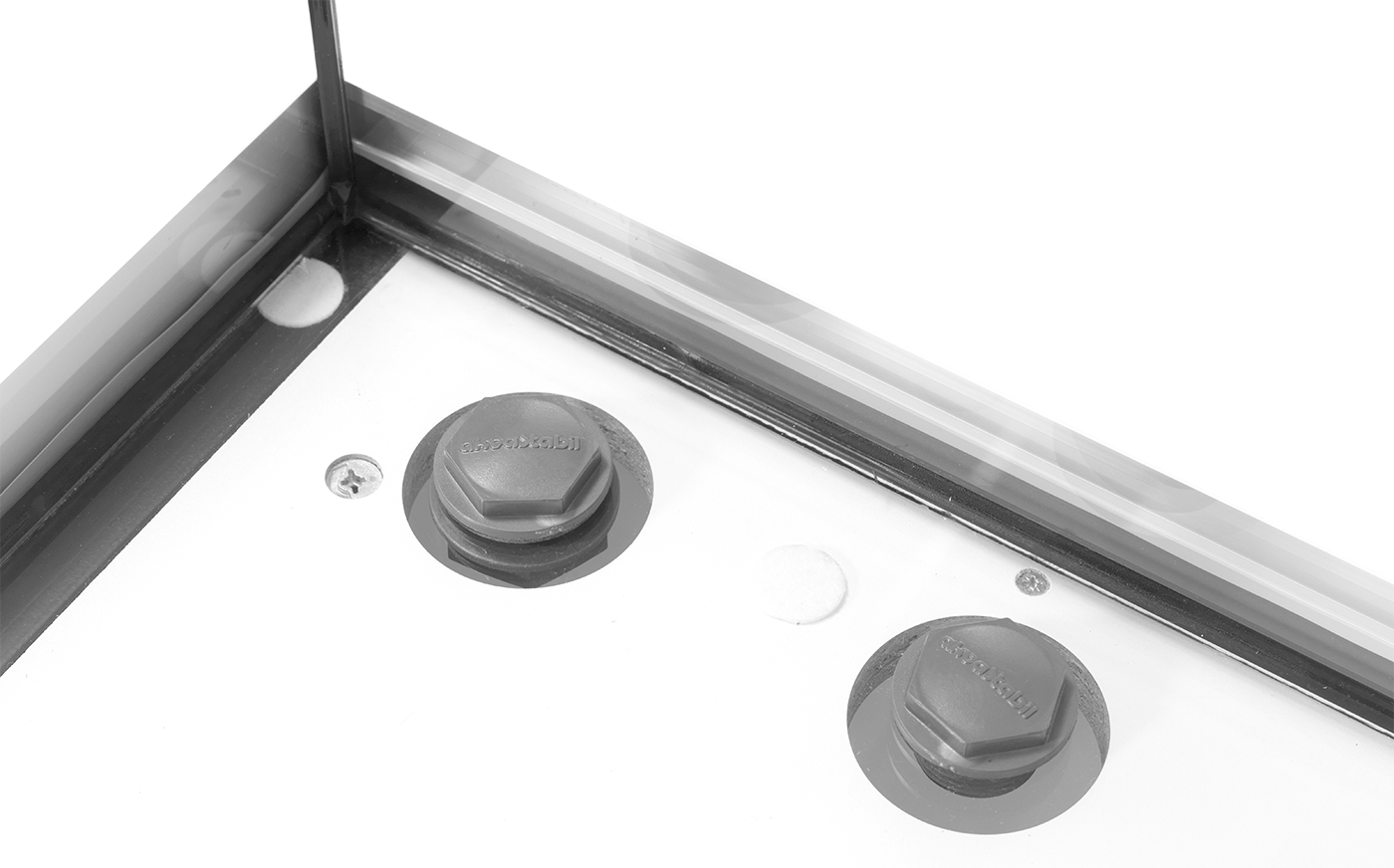 På bagsiden af FUSION-akvariet finder du slange- og ledningsgennemføringen, hvor der er god plads til selv de største slanger. Bruger du indvendige pumper, hvor der ikke er brug for så stor en åbning, kan du let lukke hullet med det medfølgende dæksel. Der er der gennemføringer i begge sider, så du har mulighed for at føre slanger ind i begge ender af akvariet. 900 Liter og 1250 liters akvarierne har endvidre hulboring gennem bundglassene, så du kan koble slangerne til spandfiltrene direkte på hér.