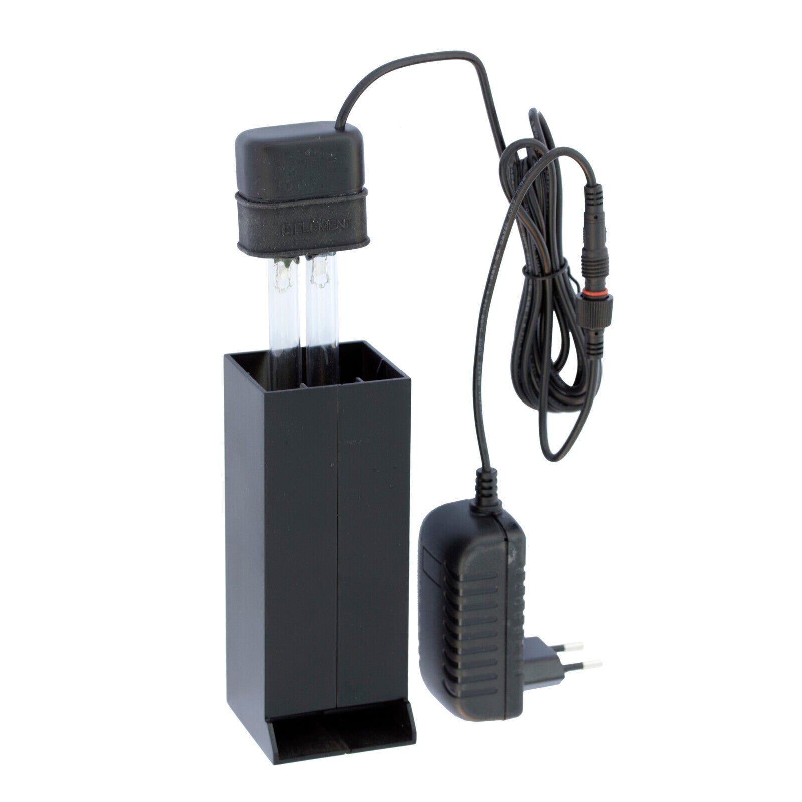 Stykpris pr.Kæmper du med uklart vand, alger eller måske endda sygdom, kan et UV-filter være din redning. Denne specielt udviklede UV-filterindsats monteres helt diskret indvendigt i ELEMENT filteret. Du slipper således for at skulle have et ekstra agregat sidende indeni dit akvarium, som ellers var den eneste løsning indtil nu. UV-indsatsen monteres enkelt og let indvendigt i dit filter og uden brug af værktøj - du behøver ikke engang afmontere filteret for at montere indsatsen. UV-indsatsen består af en indbygningskasse, et UVC-rør med indstøbt kabel og en strømforsyning. Indbygningskassen tjener dels som fixtur for UVC-røret men beskytter også samtidig dit filters vægge mod de nedbrydende stråler fra UVC-røret. UVC-røret er en helt sikker helstøbt enhed, som let byttes ud når den er udtjent efter ca. 8000 timers drift. Ved udskiftning af UV-C røret, genbruger du naturligvis både indbygningskassen og strømforsyningen.
