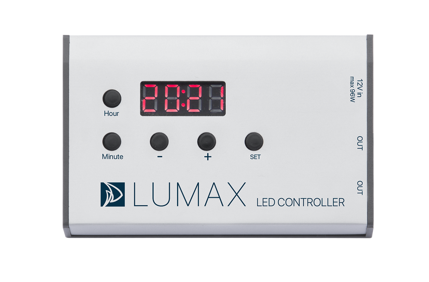 LUMAX LED-Controller er nem at betjene og sikrer stabil drift af armaturet. Den fleksible styring af belysningen gør det muligt at tilpasse lysforholdene til både plante- og fiskebestandens behov, hvilket skaber optimale vækst- og trivselbetingelser. Med LUMAX får du ikke bare kontrol over lysstyrken – du får en intelligent løsning, der efterligner naturens egen rytme og giver akvariet et smukt, levende lys hele døgnet.