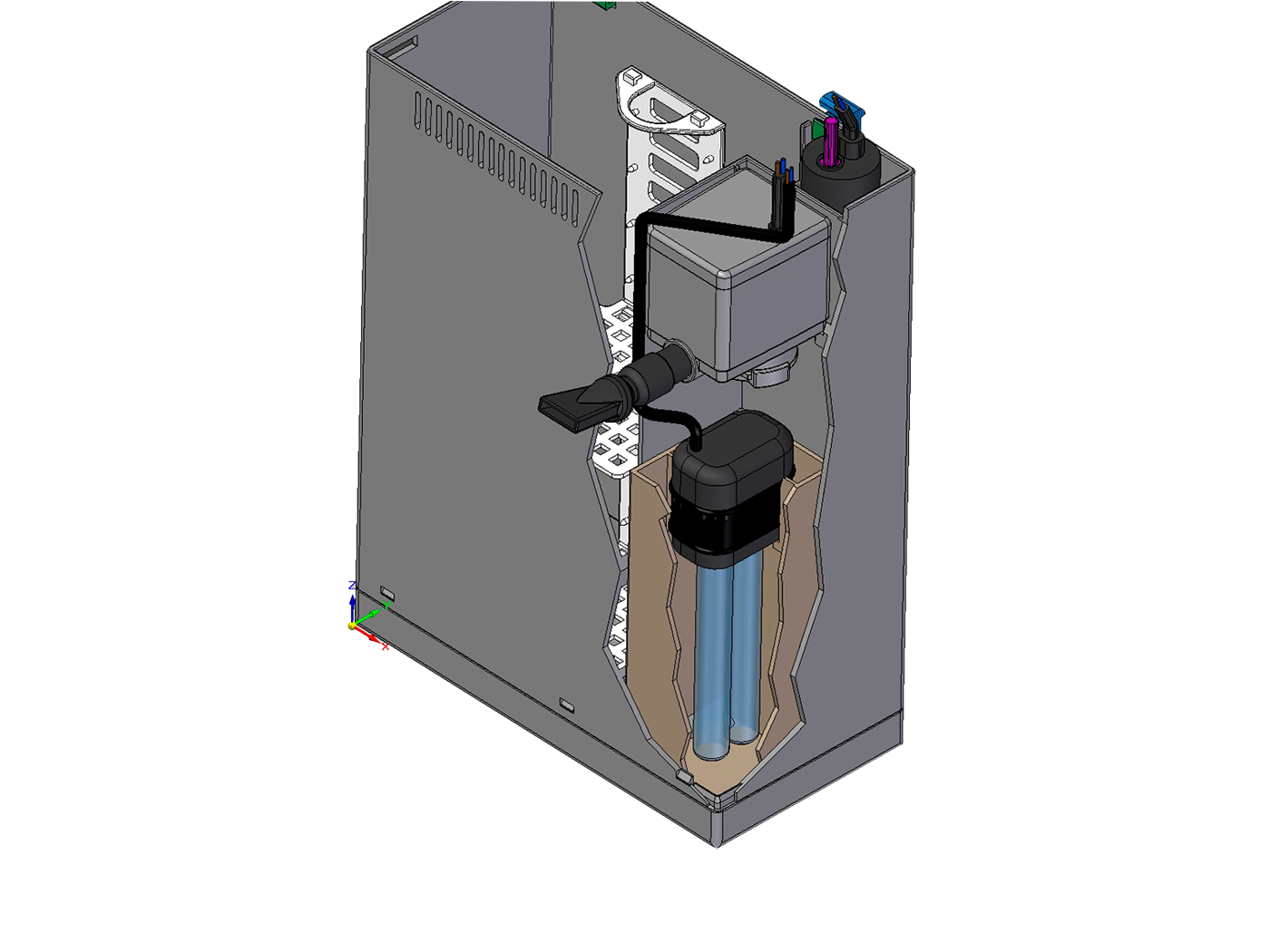 ELEMENT-filteret fastgøres let og effektivt i akvariets topramme. Du kan således helt selv bestemme, hvor du ønsker, det skal placeres. Da filteret netop er en alt-i-én løsning, indeholder det både filterkurve med filtermaterialer, et indbygget varmelegeme samt en cirkulationspumpe, som du let kan komme til øverst i filteret – du behøver ikke engang at tage filteret ud af akvariet. Du åbner blot filterets låg, hvorefter du nemt kan trække delene ud og rengøre dem.