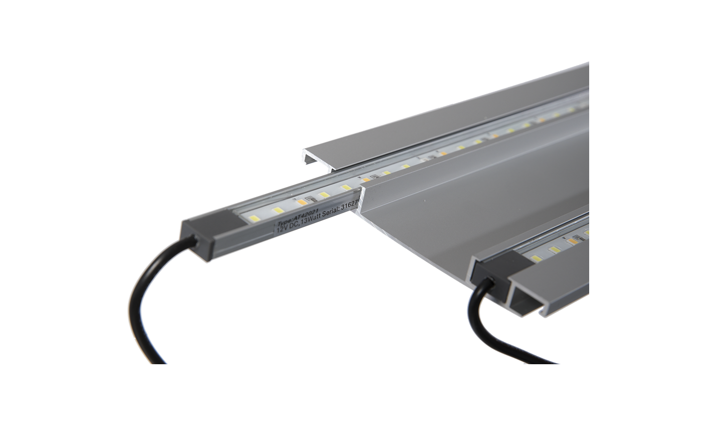 73 cm lange LED-strips på 15W passer direkte ind i sporene i ELEMENT 80 cm akvariets topplade.