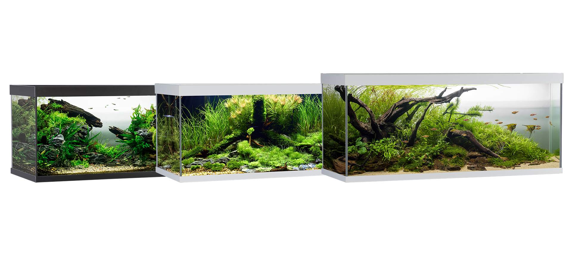 ELEMENT-akvariet finder du i farverne hvid, sort og grå (aluminium) og i 3 populære størrelser,