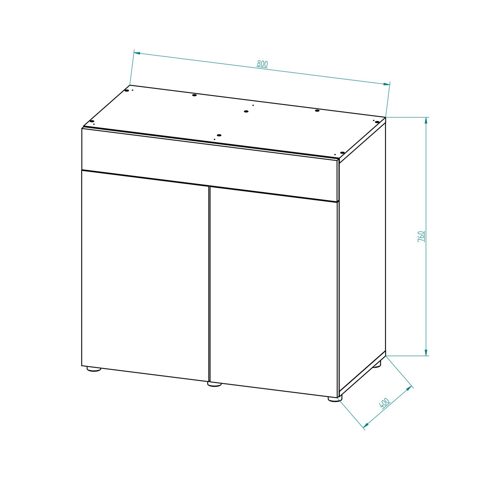 Dette møbel passer til vores 80cm. (144 ltr.) ELEMENT akvarie og måler 80x40x76cm. Farven er hvid.