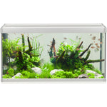 FAMILY akvariet er designet til at give både et smukt og funktionelt hjem til dine fisk og planter. Serien kombinerer holdbarhed, elegant design og driftssikkerhed, hvilket gør akvariet velegnet til både begyndere og erfarne akvarieejere. En af de store fordele ved FAMILY akvarierne er de robuste aluminiumsrammer. Sammenlignet med akvarier med plastikrammer giver aluminiumsrammer en stærkere og mere stabil konstruktion, der holder formen bedre over tid og sikrer, at glasset er korrekt understøttet. Aluminiumsrammer er også mere modstandsdygtige over for sollys og temperaturændringer, hvilket giver et akvarium, der bevarer sit elegante udseende i mange år. Akvariet er udstyret med energieffektiv LED-belysning, som fremhæver fiskene og planternes naturlige farver, samtidig med at det understøtter plantevækst og skaber et behageligt lysmiljø.