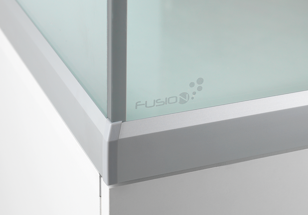 FUSION er til dig, der ønsker et stort kvalitetsakvarie til en god pris. Med en kapacitet på op til 1250 liter giver FUSION mulighed for et rigt og varieret undervandsliv og et hav af indretningsmuligheder. FUSION byder på mange af de samme gode detaljer og funktioner som storebrodervarianten MOVE, heriblandt de kraftige og holdbare aluminiumsprofiler. FUSION adskiller sig dog ved at have et 3-delt låg og ingen hulboringer i bundglasset i de mindre modeller. Derfor skal slangerne til filteret trækkes gennem slangegennemføringerne på bagsiden af akvariet.
