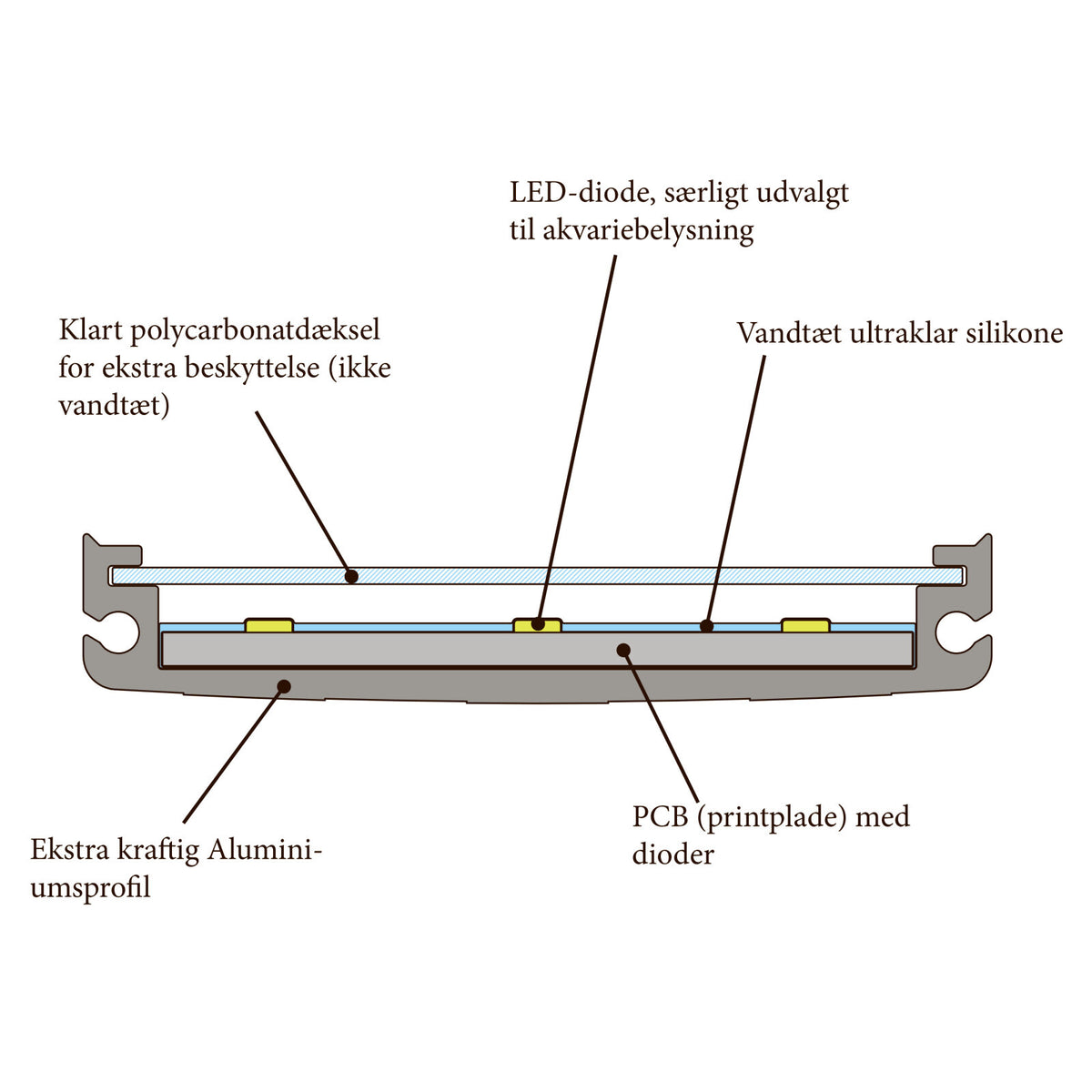 Denne lampe er på 23W og måler 73cm. i længden. Den passer således perfekt til vores 80cm akvarier (på nær FAMILY akvariet), men også til vores 160cm akvarier, hvor du skal bruge 2 stk. i længden.
