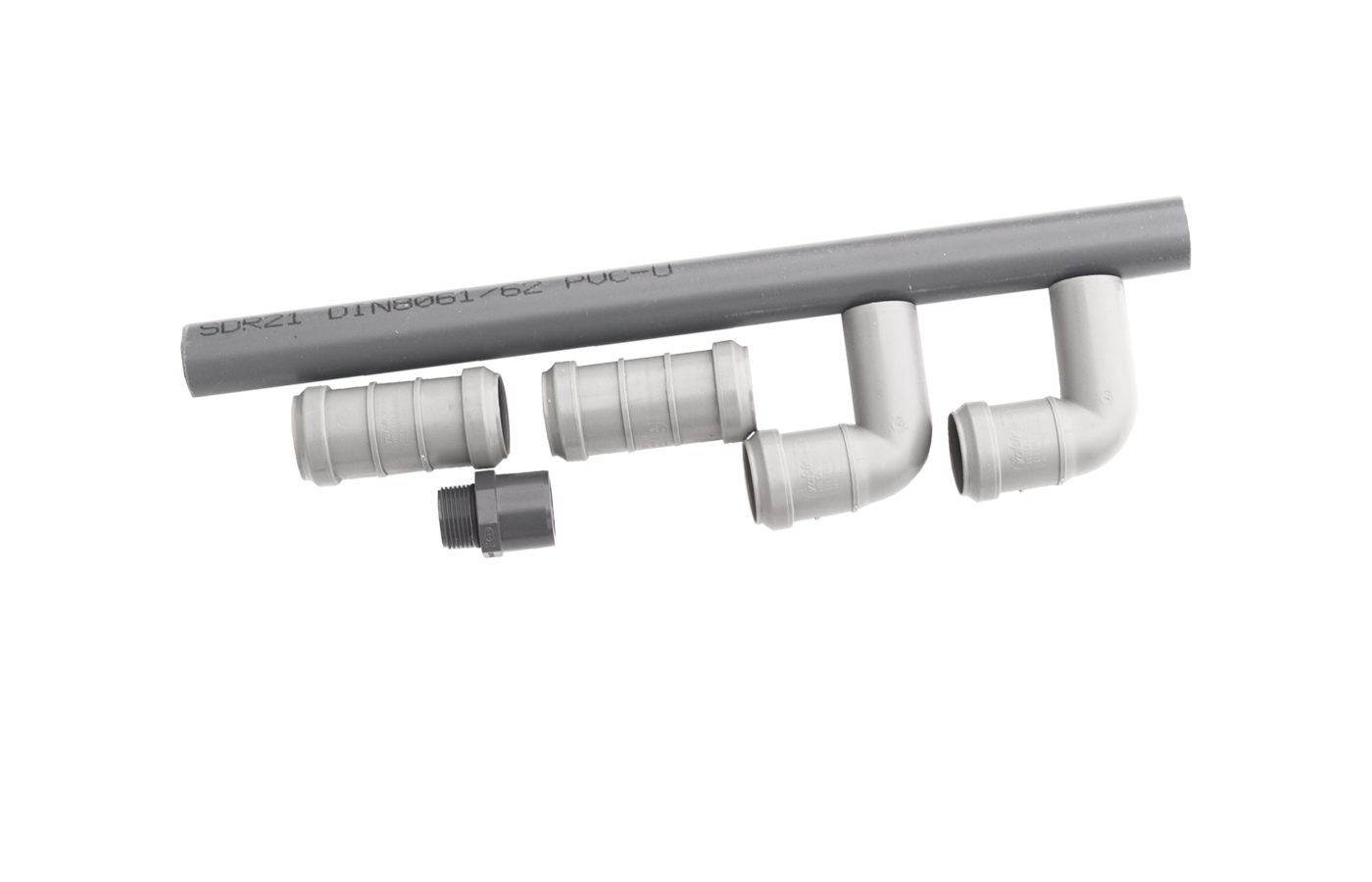 Forbindelssættet bruges når der installeres en filtersump i møblet. Forbindelsessættet monteres på beholdergennemføringen under akvariet, og længderne på rørene tilpasses, så vandet fra akvariet ledes ned i sumpen.