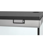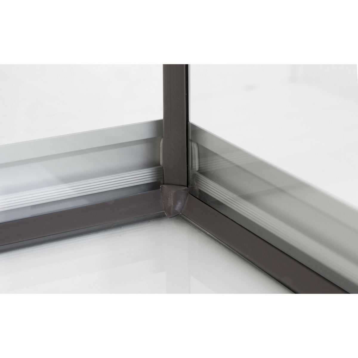 Kraftige dobbelte silikonefuger, massive aluminiumsprofiler i gavlene, fuldt åbnende låg og hulboringer i bundglasset, så slanger til filtre kan føres direkte ned i møblet.