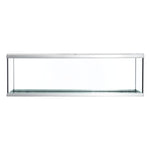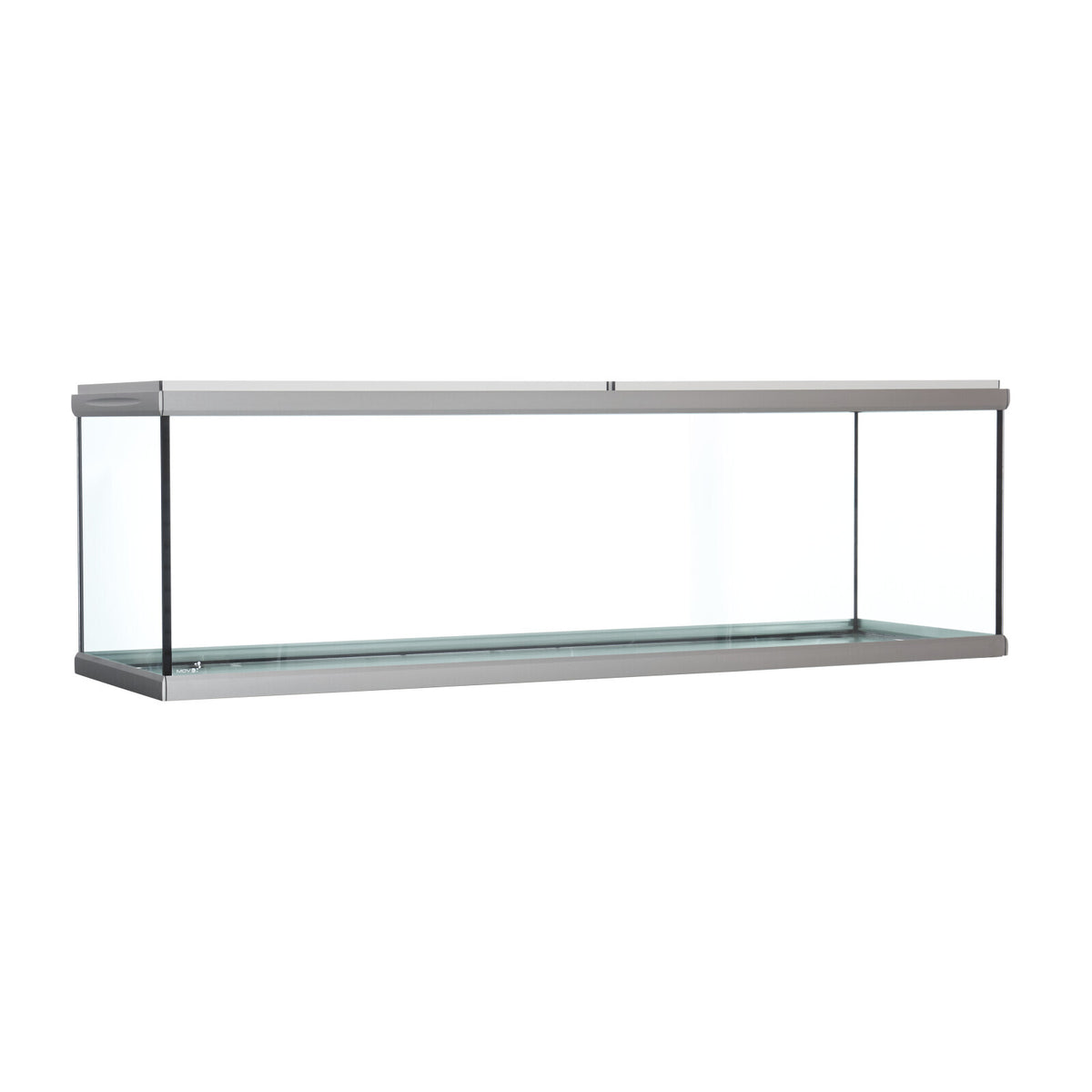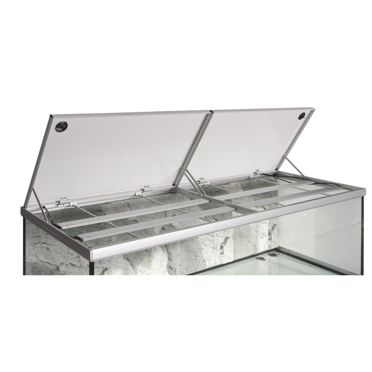 Kraftige dobbelte silikonefuger, massive aluminiumsprofiler i gavlene, fuldt åbnende låg og hulboringer i bundglasset, så slanger til filtre kan føres direkte ned i møblet.