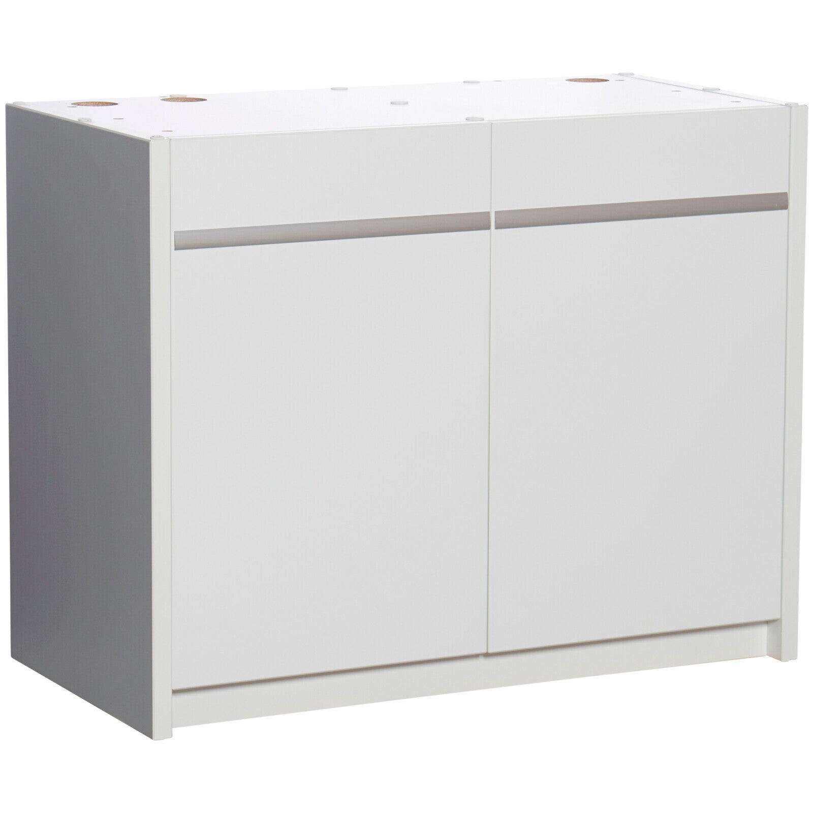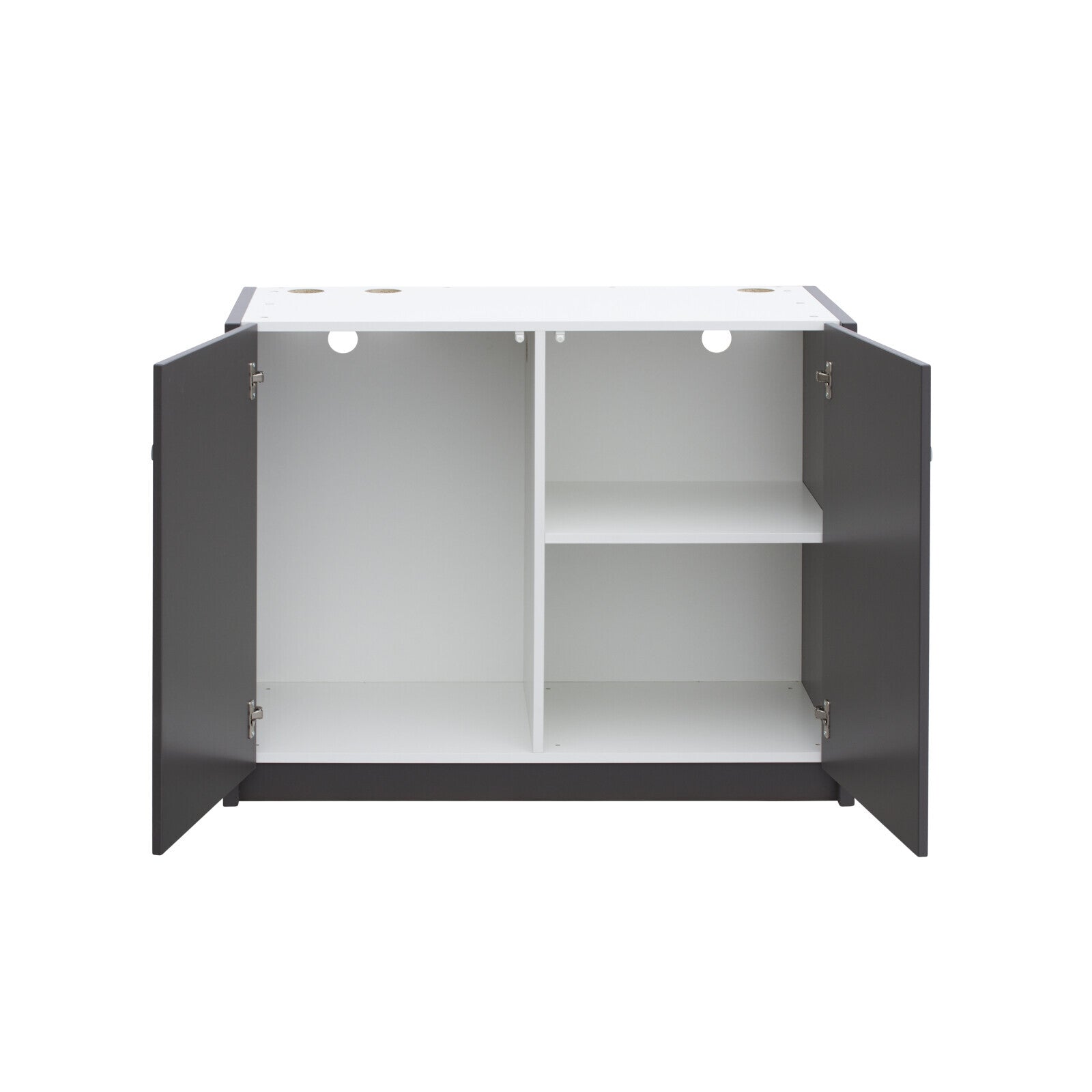 Dette møbel måler 100x50x79 og passer perfekt til MOVE 275 liter akvariet. Der er 3 borede huller i møblets topplade og farven er hvid.