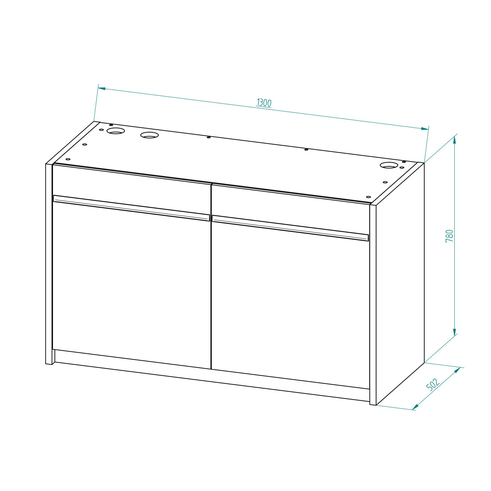 Dette møbel måler 130x50x79 og passer perfekt til MOVE 360 liter akvariet. Der er 3 borede huller i møblets topplade og farven er hvid.
