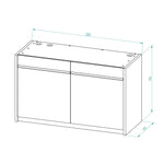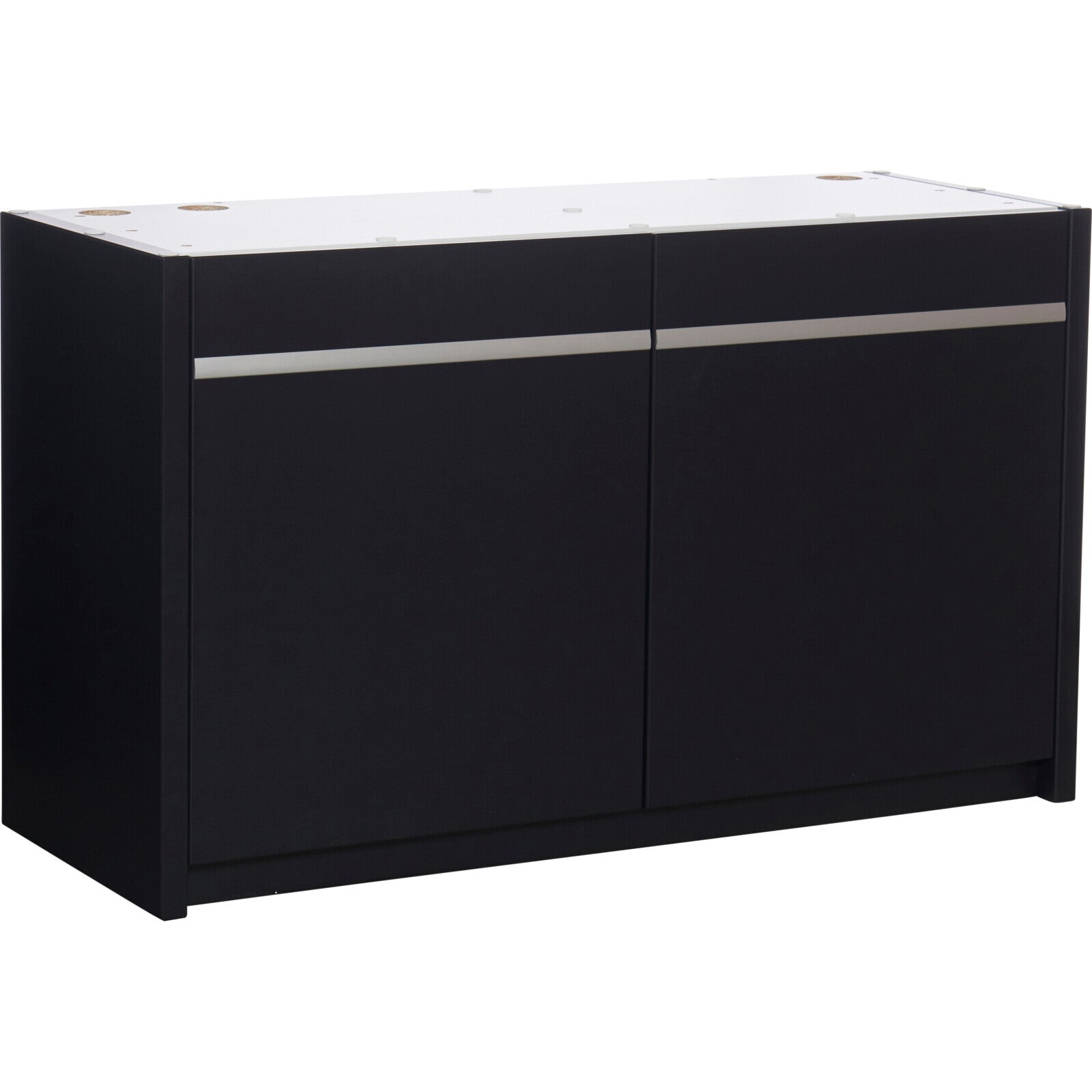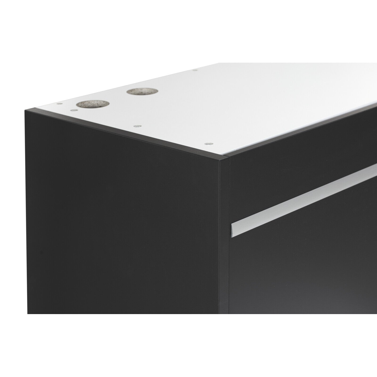 Dette møbel måler 130x50x79 og passer perfekt til MOVE 360 liter akvariet. Der er 3 borede huller i møblets topplade og farven er sort.