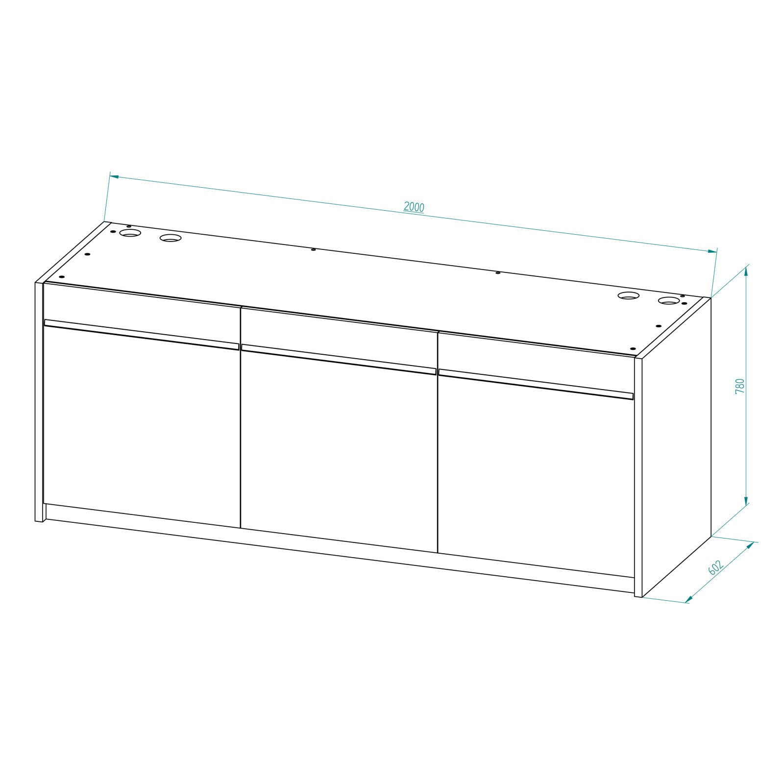 Dette møbel måler 200x60x79 og passer perfekt til MOVE 720 liter akvariet. Der er 4 borede huller i møblets topplade og farven er sort.